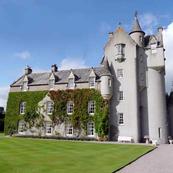 Ballindalloch Castle, home to the McPherson-Grants since 1546, is an impressive castle in Banffshire. The original Z plan tower which sat on the site was burned by James Graham, the Marquis of Montrose. The castle was restored in 1645. Extensions were added in 1770 and 1850. The Castle, known as ‘The Pearl of the North’ has the good fortune of having an excellent stretch of the River Spey running through its grounds. The present Lady Laird, Mrs Clare Macpherson-Grant Russell still lives in the castle which is open to the public.