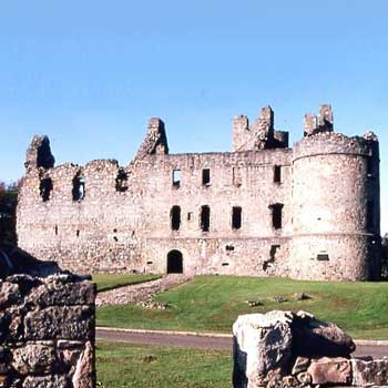 Darnaway Castle is located in Darnaway Forest, 3 miles from Forres. This was Comyn land, given to Thomas Randolph along with the Earldom of Moray by King Robert I. Sir Thomas Randolph probably built the first castle. The castle has remained the seat of the Earls of Moray ever since. Rebuilt in 1810, it retains the old banqueting hall, capable of accommodating 1,000 men. John, 3rd Earl, died at the Battle of Neville’s Cross in 1346 without male heirs, and the earldom went to Patrick Dunbar, who was the husband of one of John’s daughters. The male line of the Dunbars failed around 1430, and the earldom went to the Douglases. When Archibald Douglas, Earl of Moray died in battle on May 1, 1455, fighting with his brothers against King James III, who had decided to curb the power wielded by the Douglases, the Moray title and estates were forfeited along with various other Douglas possessions. It now passed to the Murrays, and then to the Stuart family, with whose descendants it remains. To the south of the castle, where the River Findhorn rushes through a gorge, Randolph’s Leap commemorates the sort of long-jumping usually associated with Rob Roy MacGregor. The castle is still occupied.