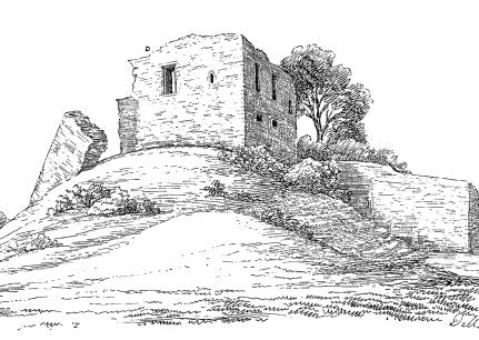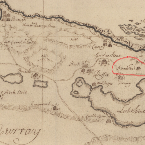 Kinneddar Castle in Moray, Scotland was the residence of the bishops of Moray from c.1187 and its first documented incumbent was Bishop Richard (1187 – 1203). Bishop Archibald enlarged or rebuilt the castle in c. 1280 and it continued to be used by the bishops until the late 14th century. Nothing now exists of the castle except one fragment of a rubble wall that is integrated into the Kinneddar kirkyardboundary wall. Loch Spynie, then open to the sea and much larger than its present size, came close to the castle and its marshes surrounded the castle enclosure on three sides. The ruinous structure still existed in 1734 and was described as being a central tower enclosed by two concentric hexagonal walls which made it unique in Scottish terms. Adjacent to the castle grounds stood the ancient kirk of Kinneddar which became the second cathedral of Moray following the move of the bishop’s seat from Birnie. The Pictish sculptures found in the vicinity of the castle and kirkyard point to the area being an important 8th century Christian centre (see Culdees) and may have been a principal location for the conversion of the Picts.