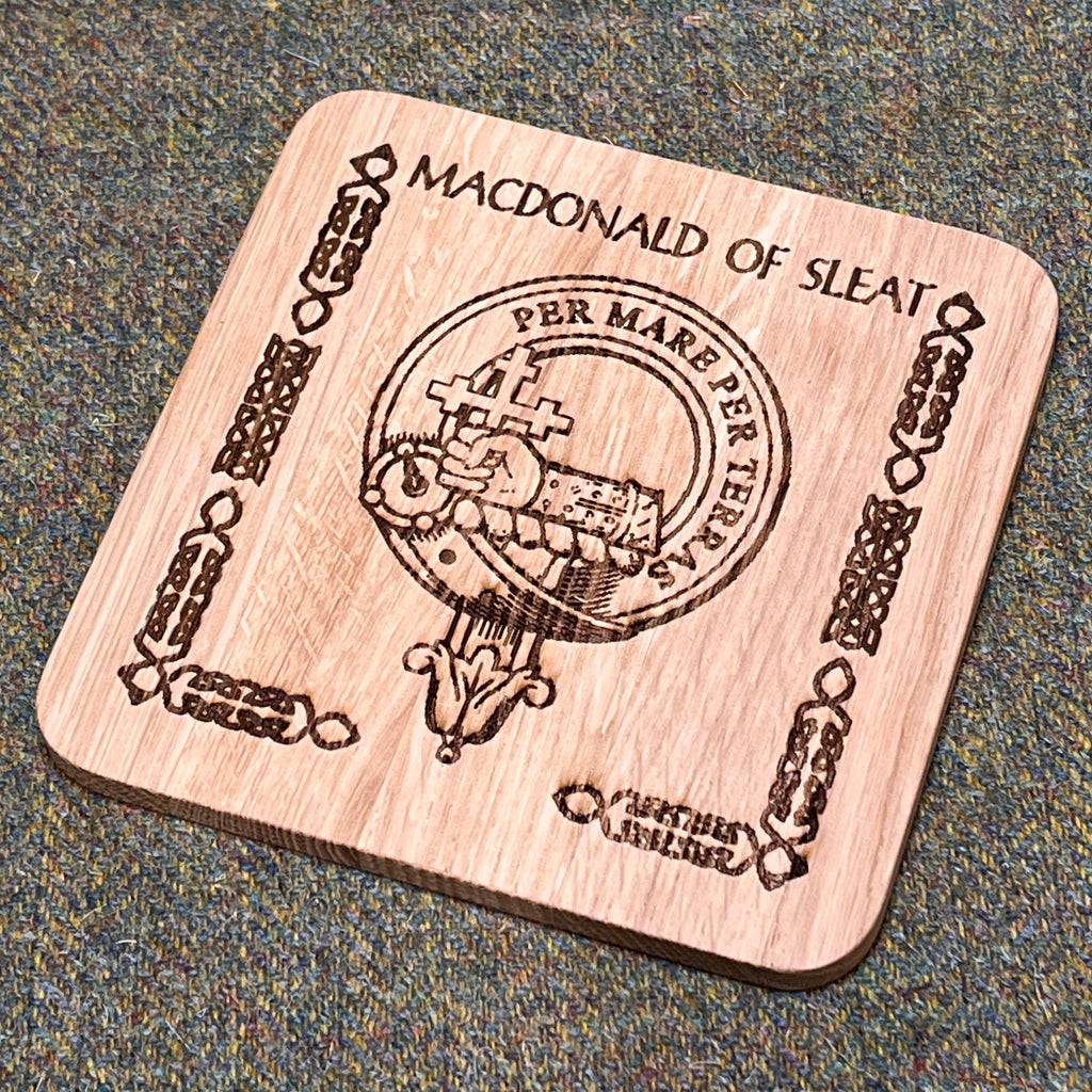 Real oak coaster with clan crest engraved on the surface - any clan.