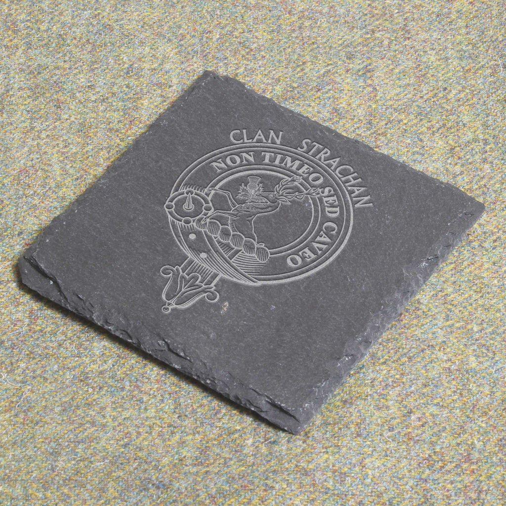 Introducing the Strachan Clan Crest Slate Coaster - the perfect accessory for your table that combines style and functionality. Made from real slate, this coaster is not only visually appealing but also durable, ensuring long-lasting use.